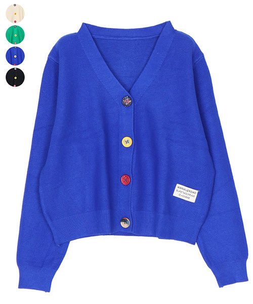 マルチカラーボタンがアクセントになったニットカーディガン。 1つひとつ色の違うボタンが遊び心をプラスし、シンプルなコーデに個性を添えます。 ゆったりとしたシルエットと短めの丈感で、バランス良くトレンド感を演出。 Tシャツやワンピースの上から羽織るだけで、コーディネートの主役になります。