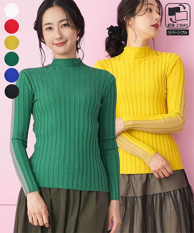 前後リバーシブル配色切替ボトルネックニットプルオーバー 36-1444