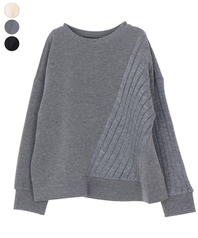 バイカラー異素材切替長袖コクーンチュニック 52-0190