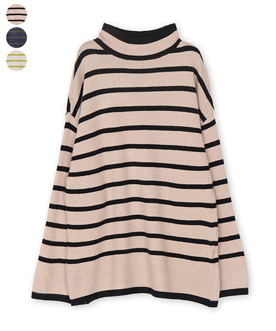 ボーダー柄ドロップショルダーニットプルオーバー 36-1785