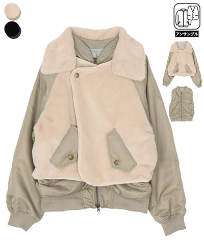 【アンサンブル】ギャザーベスト×フェイクファー付きブルゾン 36-1793