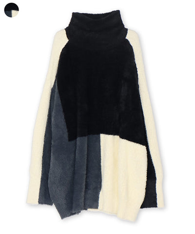 前後リバーシブルジオメトリック柄ハイネックワイドニット 36-1672