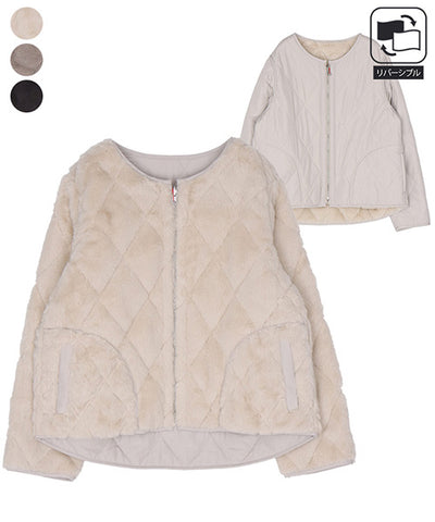 リバーシブルキルト×フェイクファーノーカラージャケット 55-0068