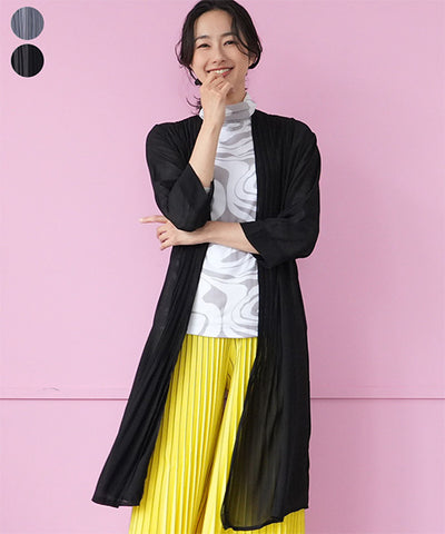 バックタックワンボタン長袖ロングカーディガン 36-1746