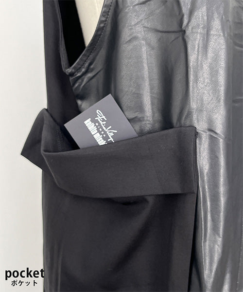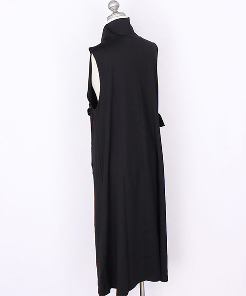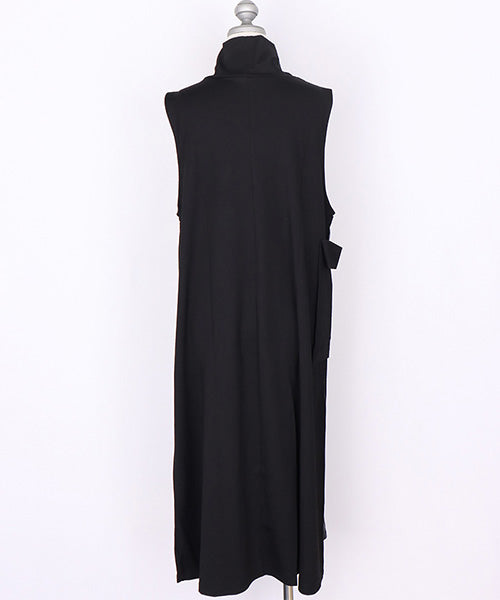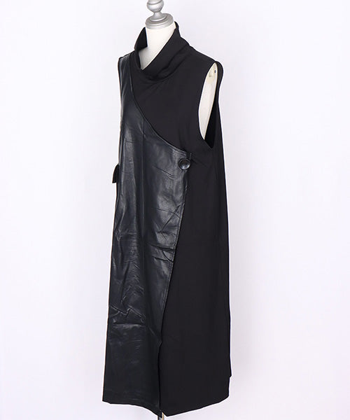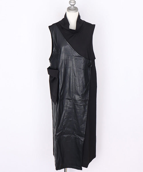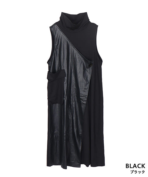 異素材のコントラストが魅力のモードなノースリーブワンピース。