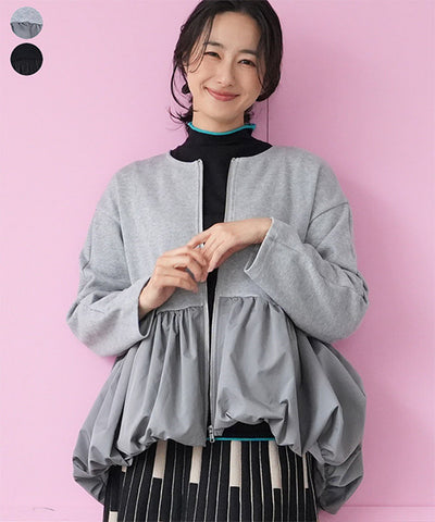 プリーツ加工フード付きジップアップショートジャケット 06-2929