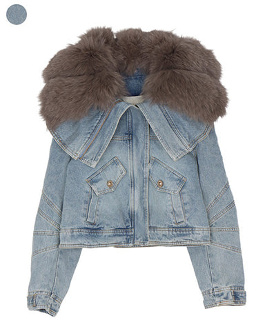 フォックスファーボリュームカラーデニムショートダウンジャケット 06-2952