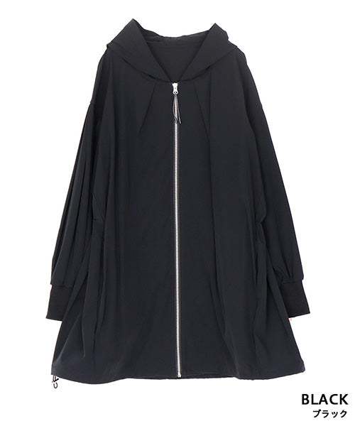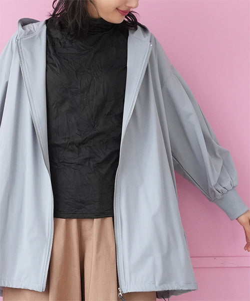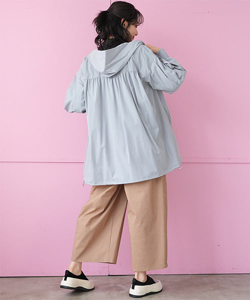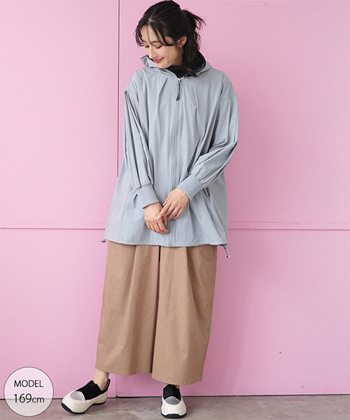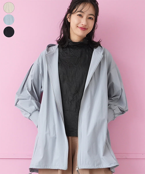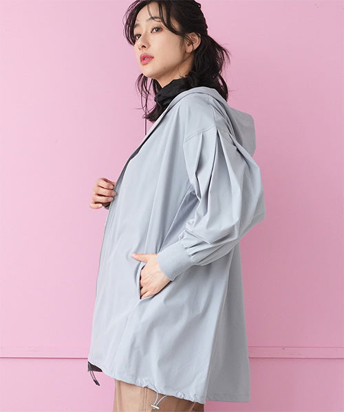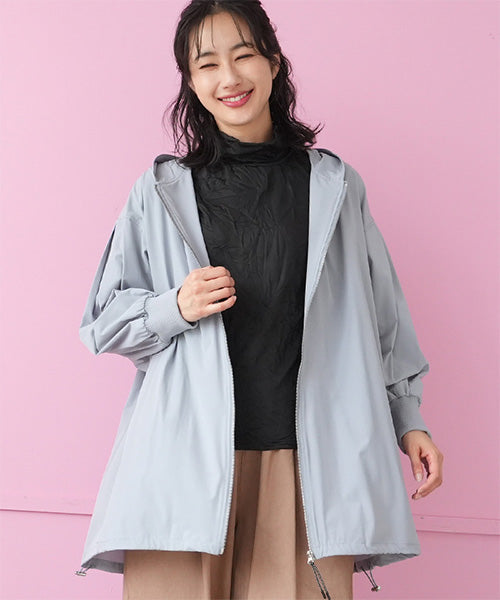 軽やかな着心地が魅力のフード付きライトコート。