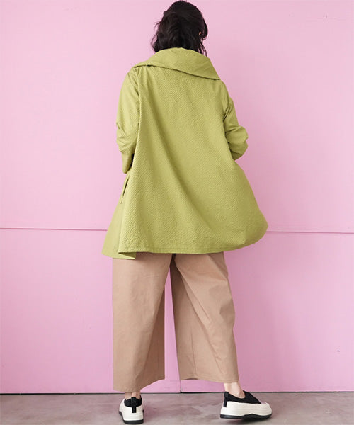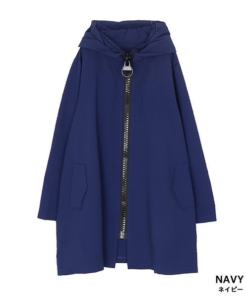 さらっと羽織れる軽やかな着心地が魅力のロングコート。 凹凸感のあるワッフル調素材が、シンプルな中にもさりげない存在感をプラスします。 フロントの存在感あるファスナーと、ゆとりのあるシルエットが大人のカジュアルスタイルに程よいアクセントとなっています。