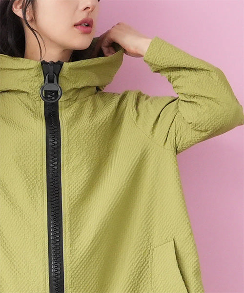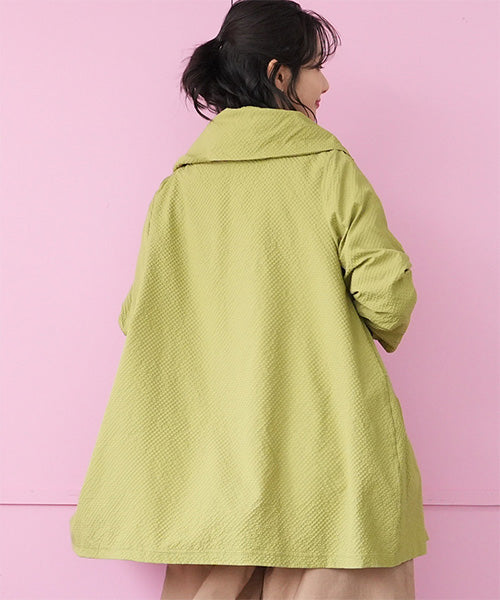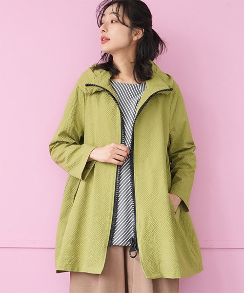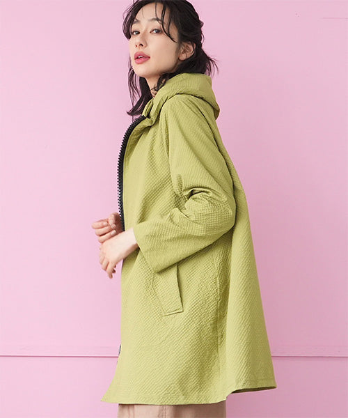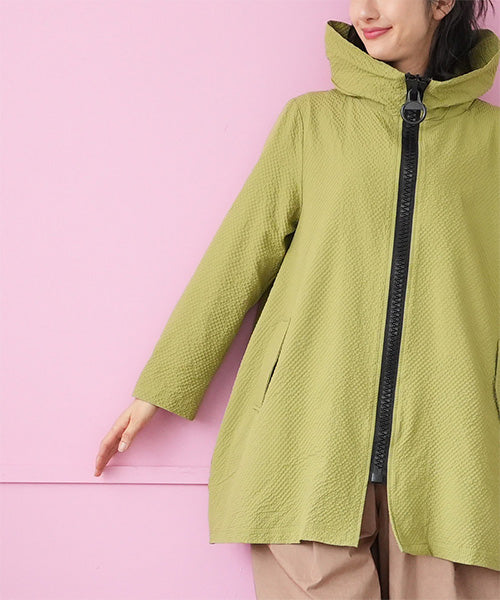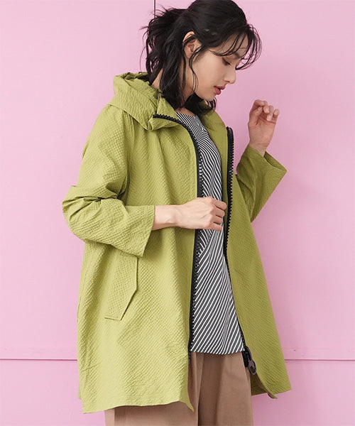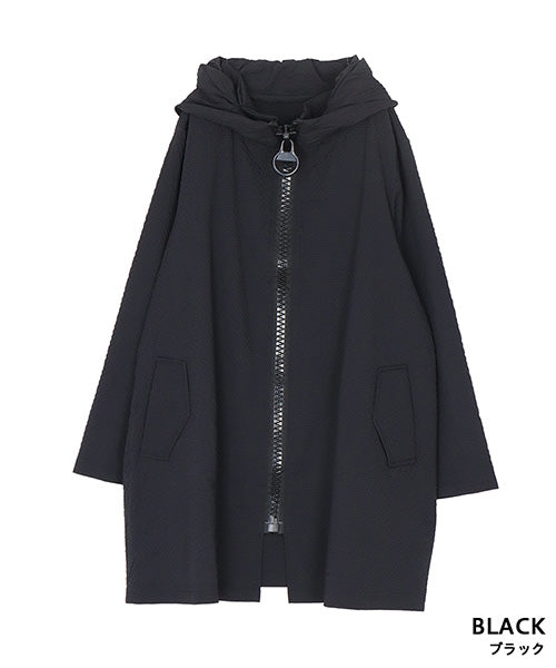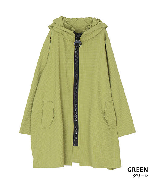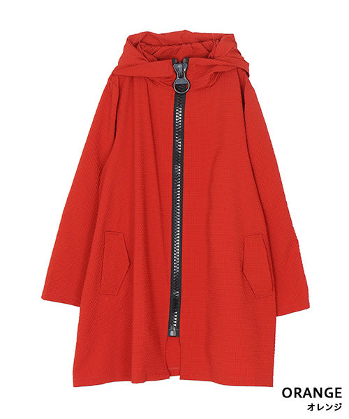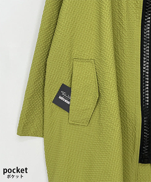 ワッフル調ビッグファスナー軽量ロングコート 36-1805