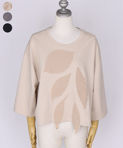 ボタニカルモチーフ7分袖ショート丈カットソー 06-2880