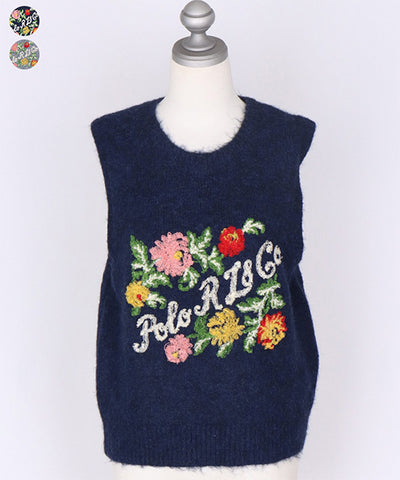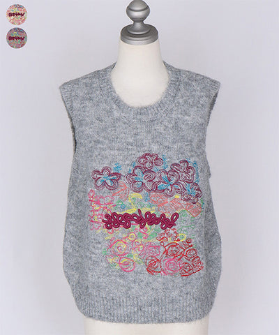 フラワー英字ループ刺繍ニットベスト 06-2915