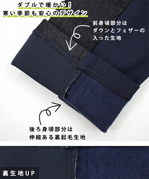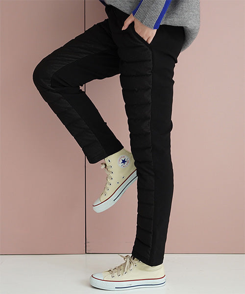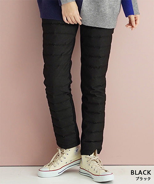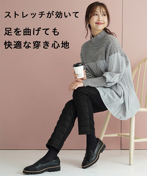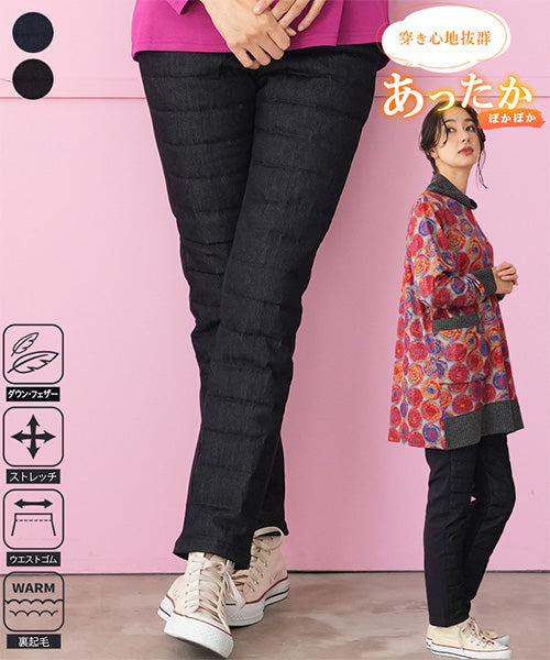 裏起毛とダウンの合わせ技で、一度穿いたら病みつきになってしまう暖かさです。