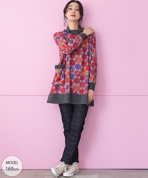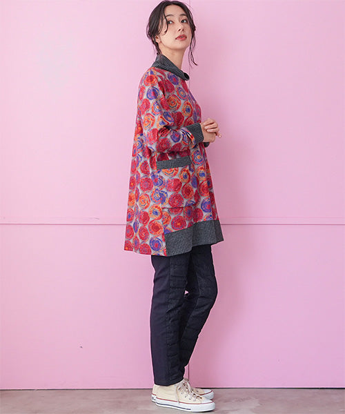 脇の切り替えポケット口は、バックと同生地を使いオシャレ感を醸し出しています。