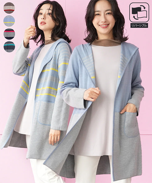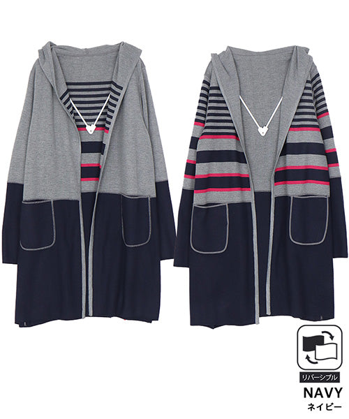 リバーシブルボーダーデザインロングニットカーディガン 33-0426