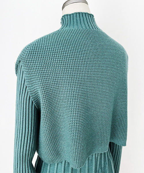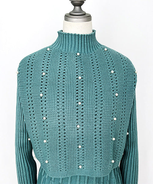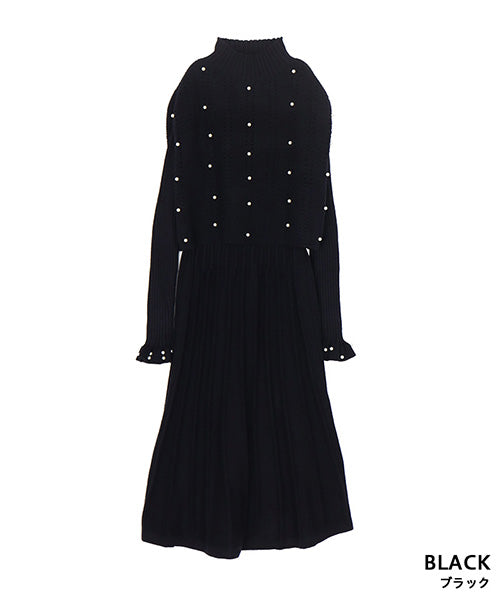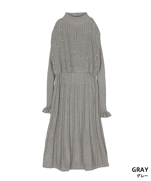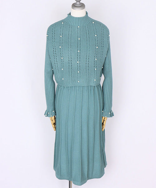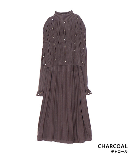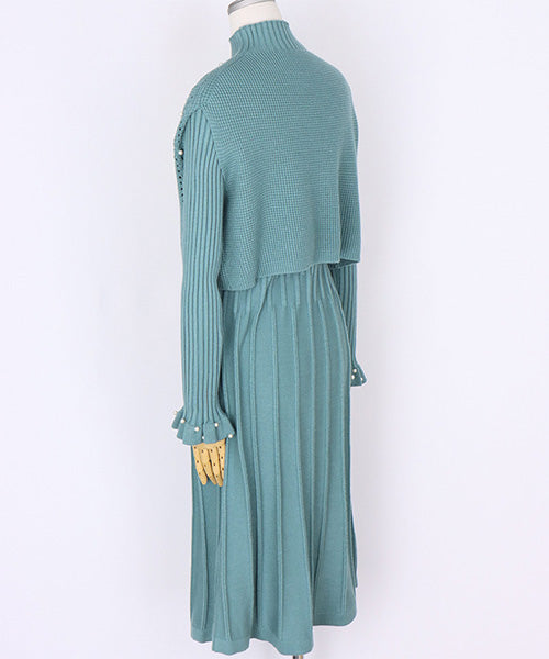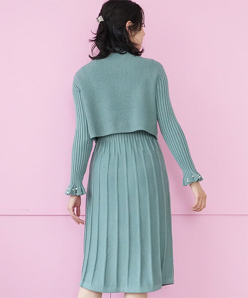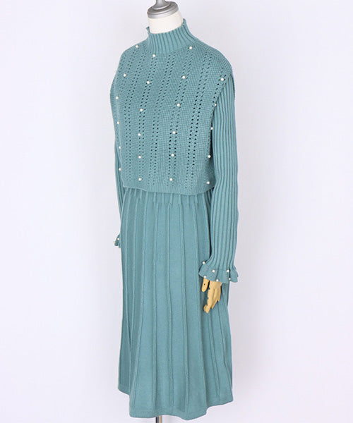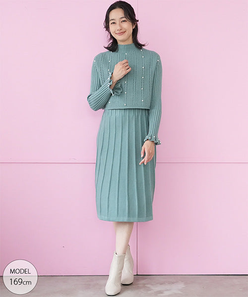 【アンサンブル】パール付ベスト×ワンピースニット 46-0276