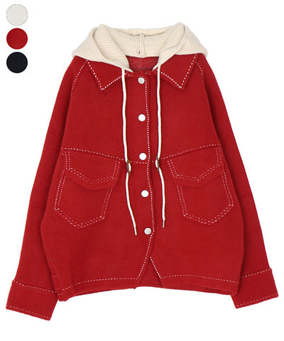 【アンサンブル】フード付Aラインコート×ボーダータートルネックカットソー 33-0421