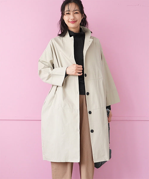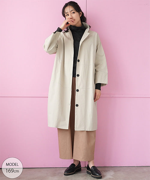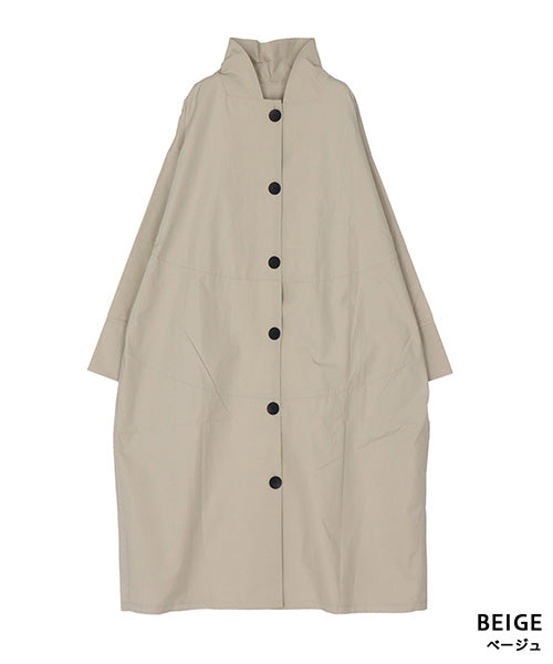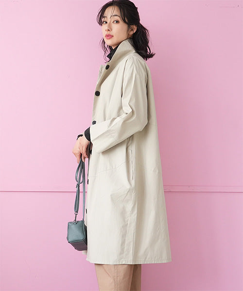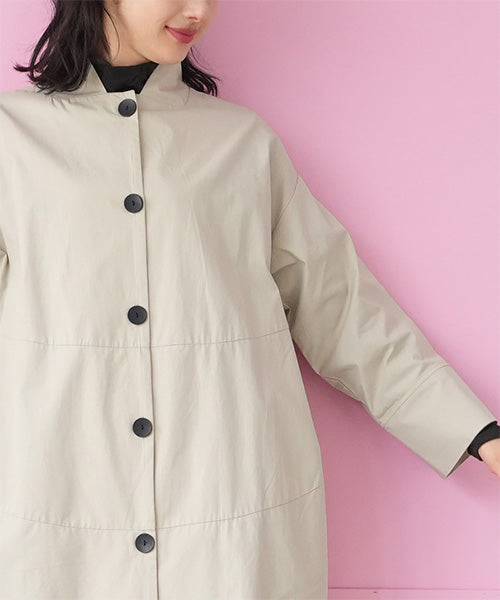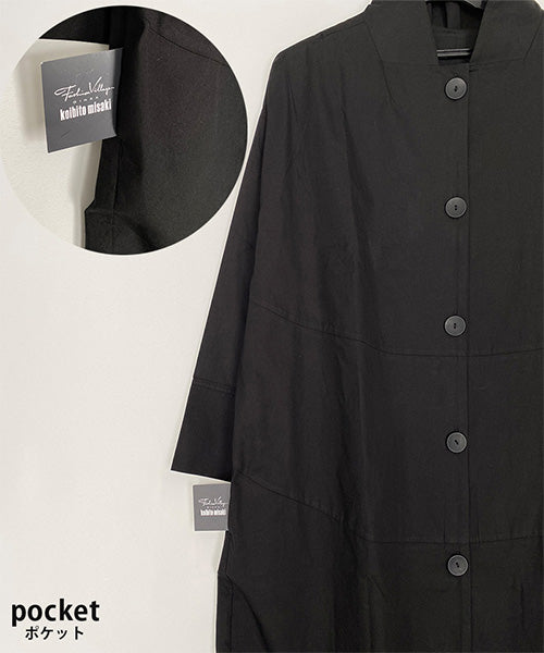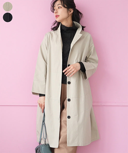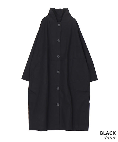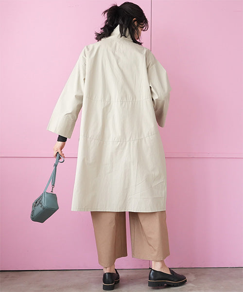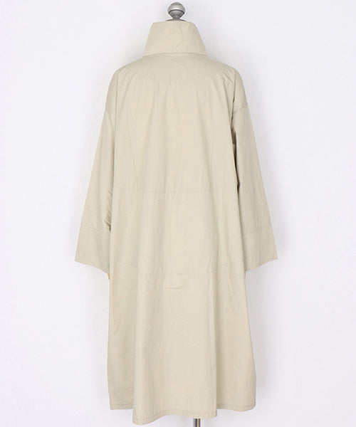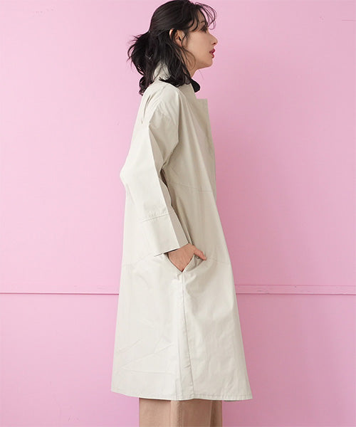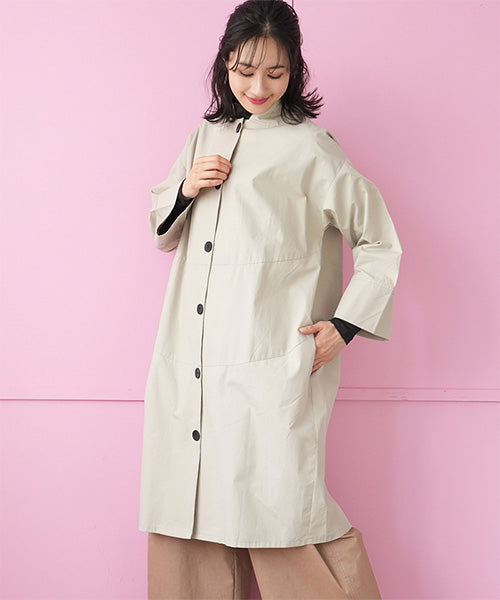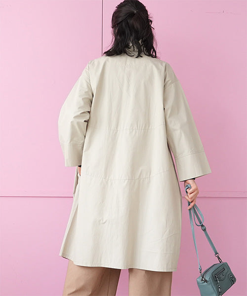 すっきりとしたスタンドカラーが印象的な、コート感覚で着られるシャツワンピース。