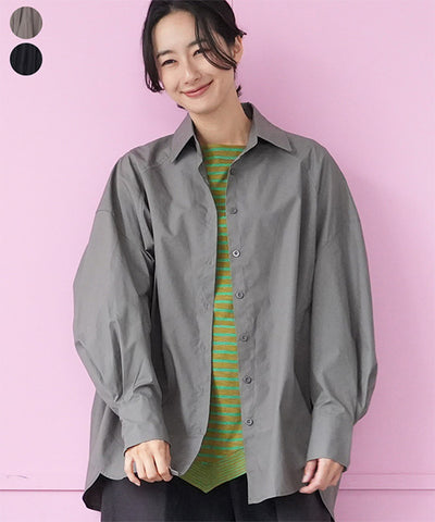 綿100%カーブ切替ワイドシルエットミディアム丈ブラウス 06-2888