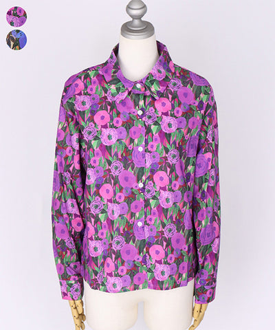 綿100%カラフルフラワープリント長袖ワイドシャツブラウス 06-2973