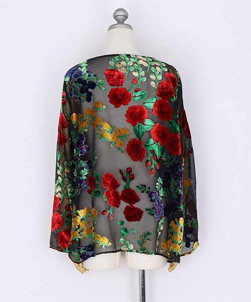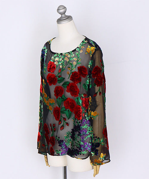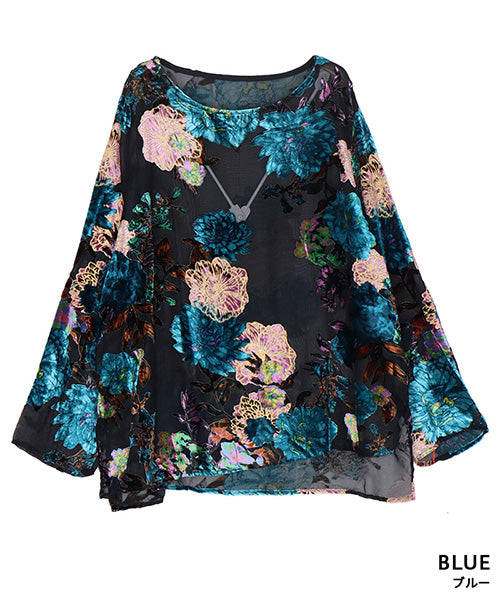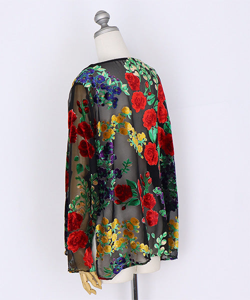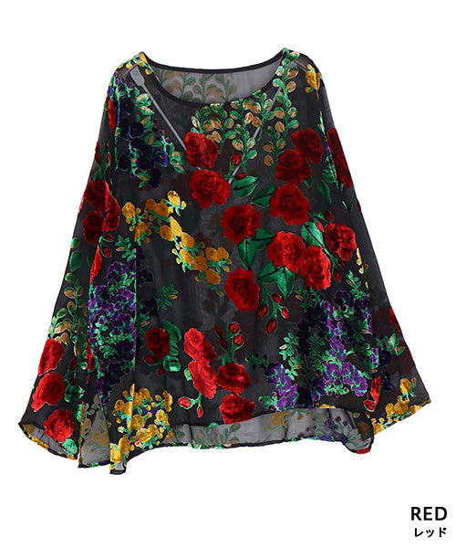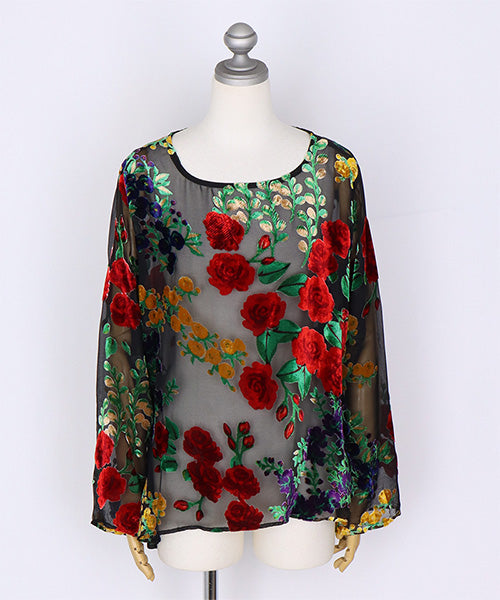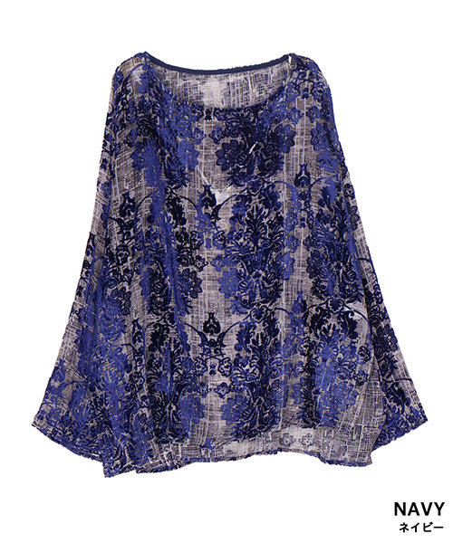 ダマスクフロッキーボートネックシアーかぶりブラウス 06-2945