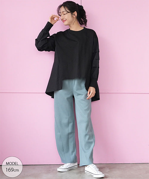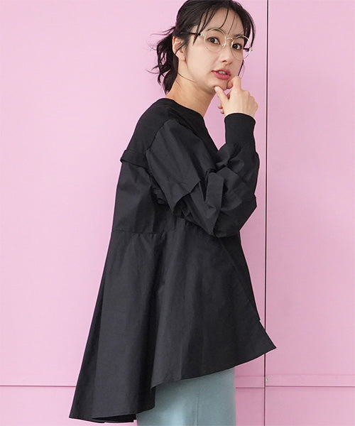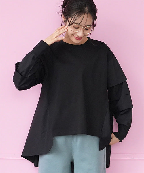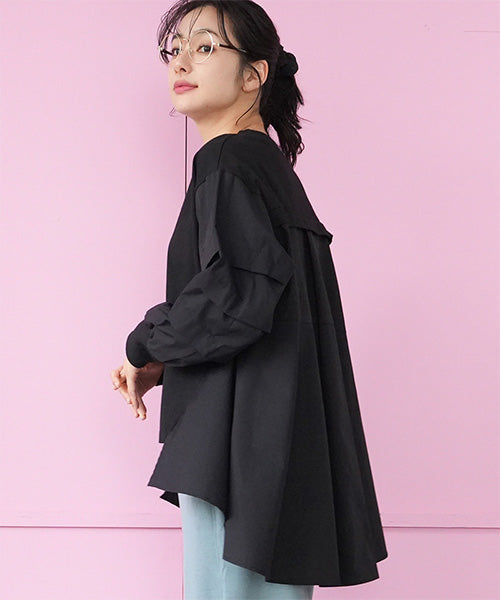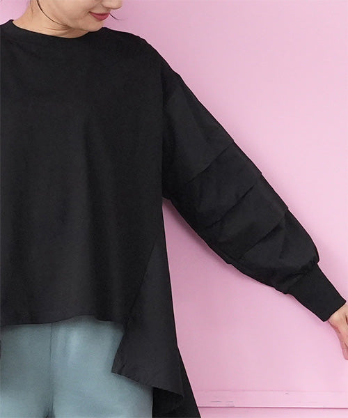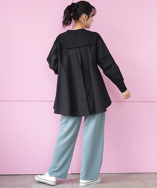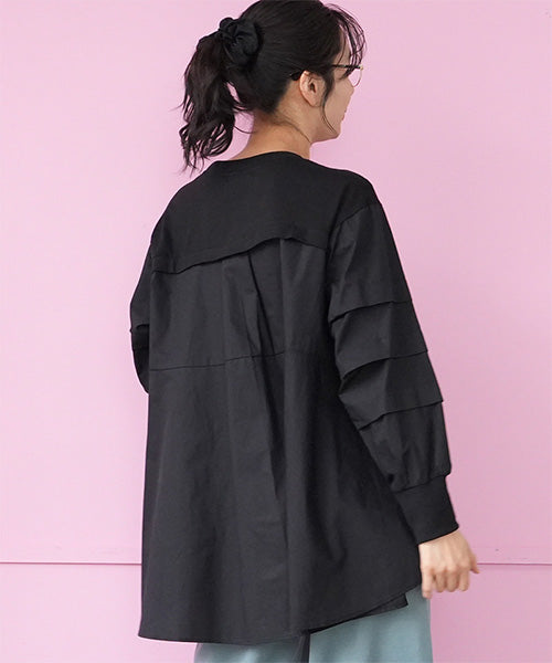 身頃はシンプルで着回しやすく、袖部分に施したタックデザインが動きと立体感をプラスします。