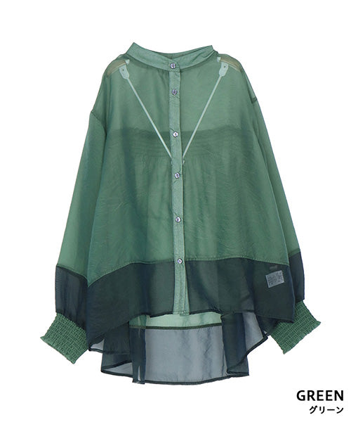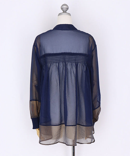 上品な透け感が特徴のオーガンジーブラウス。