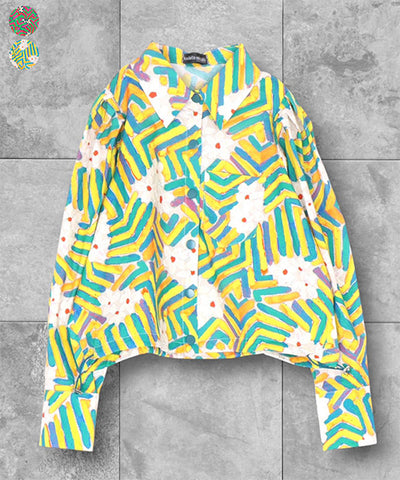 綿100%フラワードローイングボリューム袖ブラウス 06-2971