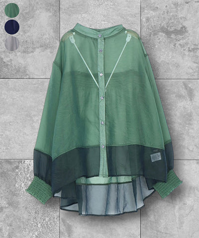 シャーリングバイカラー切替オーガンジーブラウス 36-1774