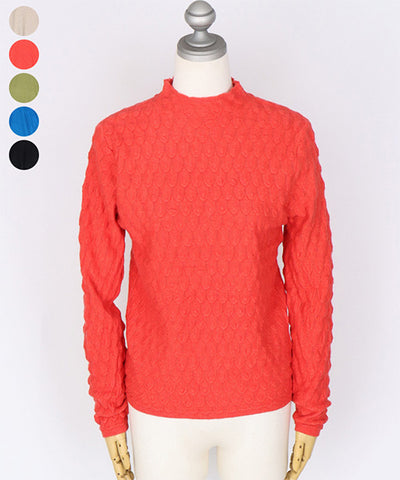 シアーメローハイネックメッシュ袖切替インナーカットソー 36-1159