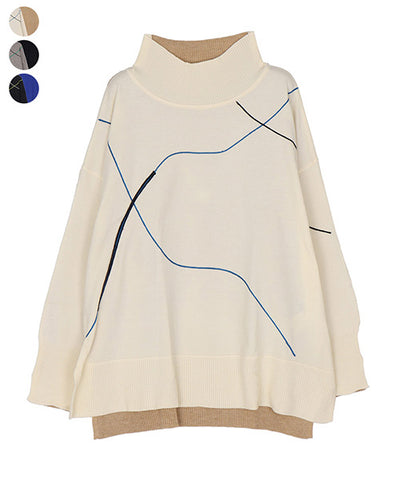 配色ラインアートハイネックニットプルオーバー 46-0281