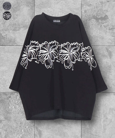 フラワー刺繍ラインストーン使い7分袖ワイドカットソー 06-2881