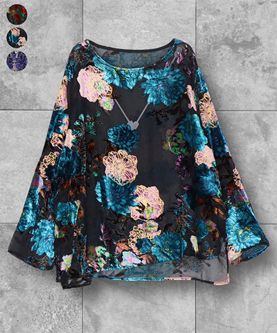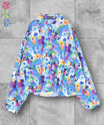 綿100%カラフルフラワープリント長袖ワイドシャツブラウス 06-2973