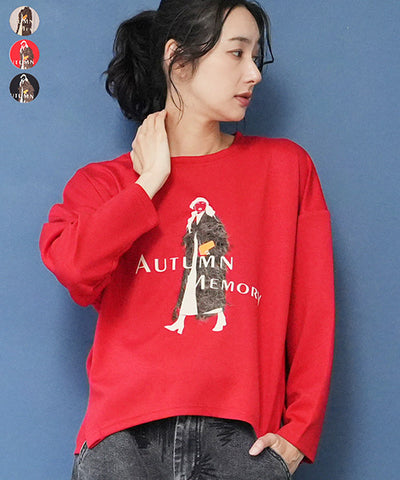 アートスケッチプリント長袖ワイドカットソー 06-2924