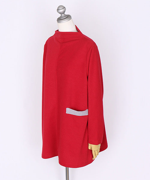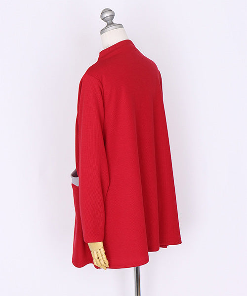 右下に施されたニット素材のポケット口がさりげないアクセントとなり、シンプルながらも個性をプラス。