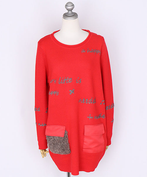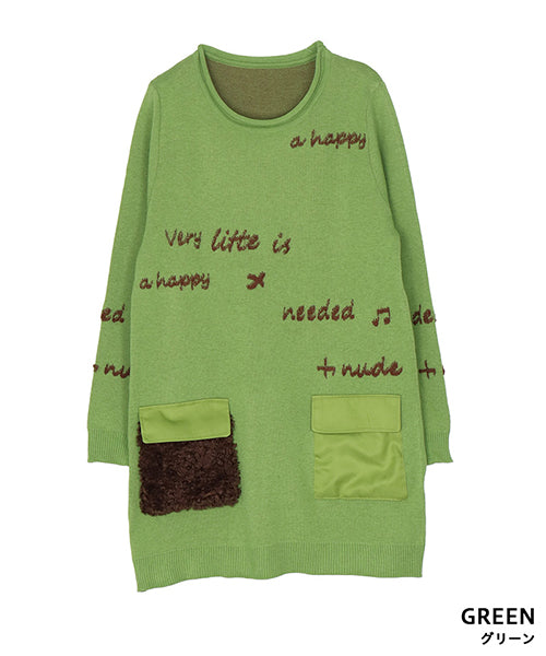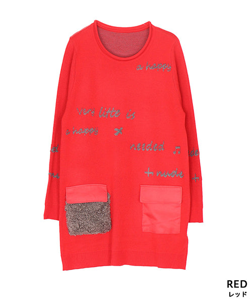 カラフルで遊び心たっぷりのロゴジャガードが目を惹く、主役級のチュニックニット。 フロントにあしらった 配色ポケット×ボア素材 の異素材コンビが、コーデに立体感と可愛さをプラスします。 ゆったりめのシルエットで体のラインを拾わず、気軽に着られるのも嬉しいポイントです。