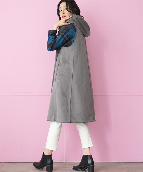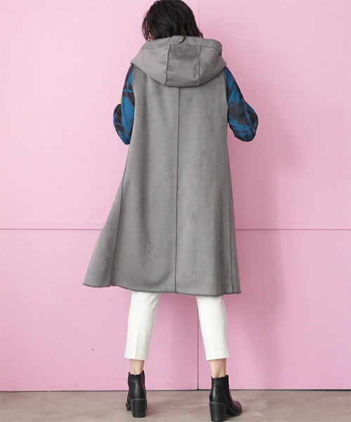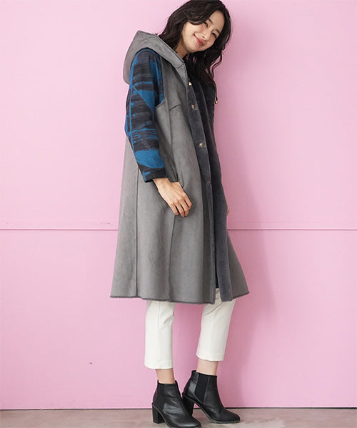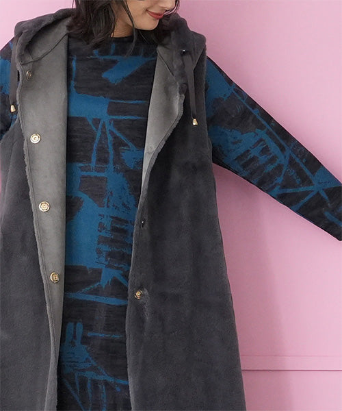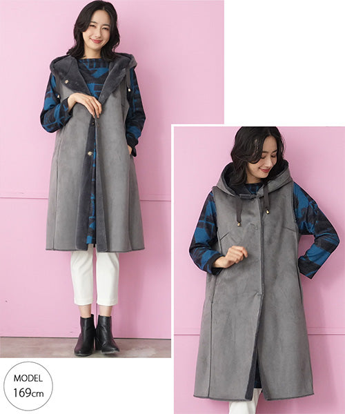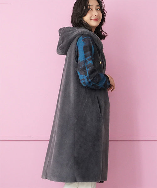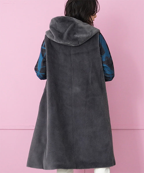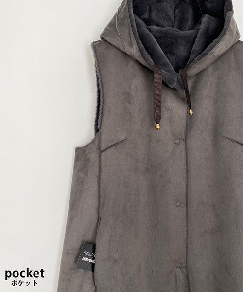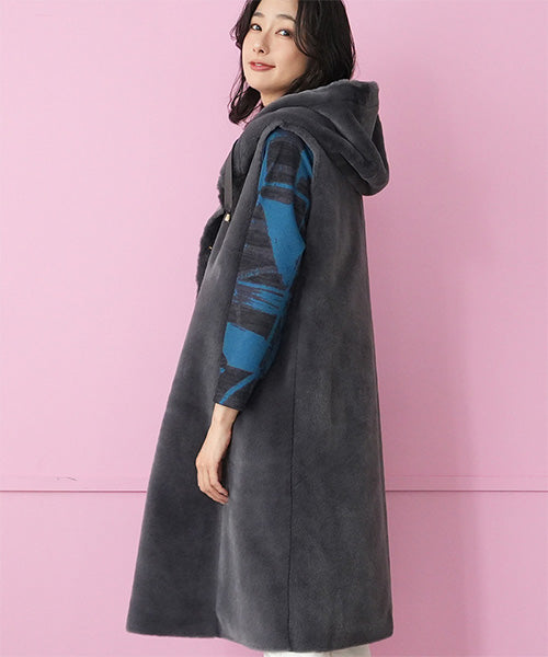 フード付エコファームートン調リバーシブルロングベスト 33-0441|40代 50代 60代 大人の女性に向けた 銀座発 ミセス 婦人服 レディースファッションブランド|コイビトミサキ公式通販|ファッションヴィレッヂ