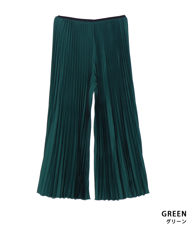 ウエストゴムで楽ちんに着用していただけるプリーツワイドパンツ。
