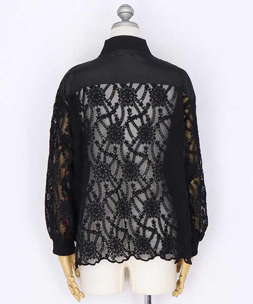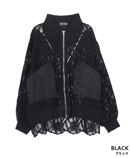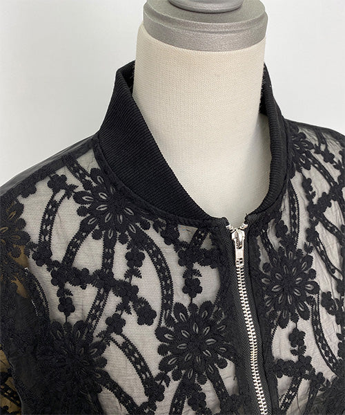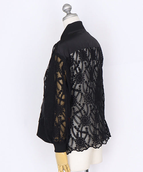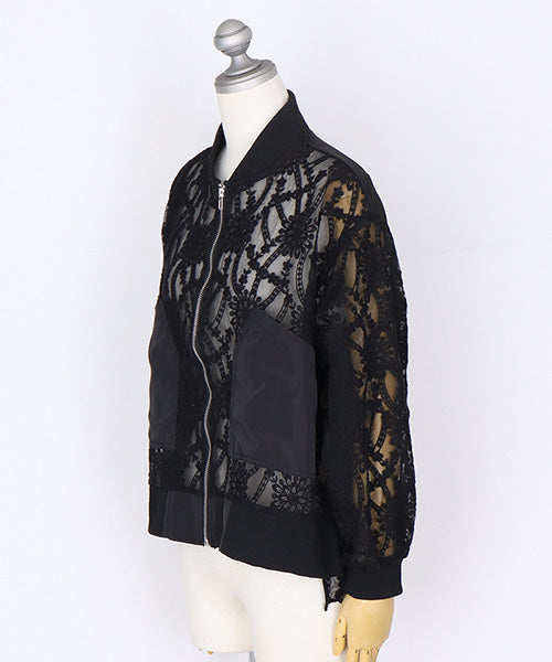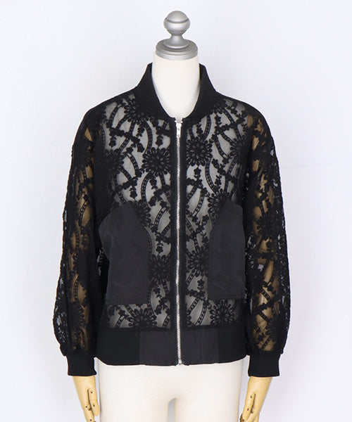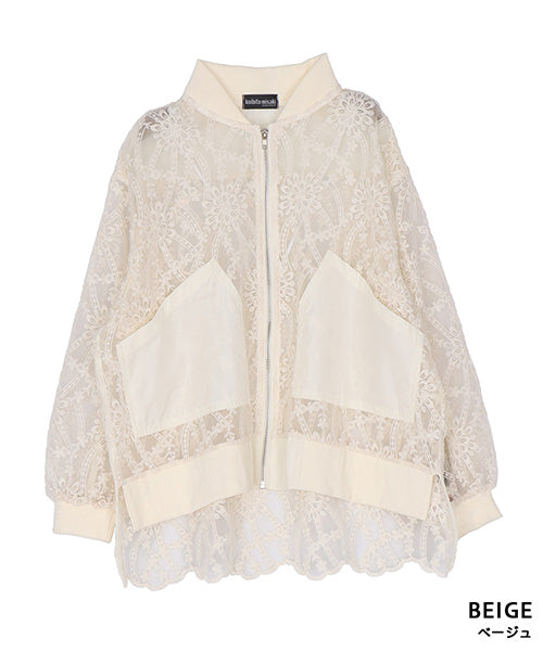 レース素材で仕立てた大人可愛いブルゾン。 羽織るだけで華やかな印象をプラスし、こなれ感のあるスタイリングが完成します。 裾に前後差があるのでスタイルアップが叶うのも嬉しいポイント。 ロングシーズン活躍してくれる便利なアイテムです。