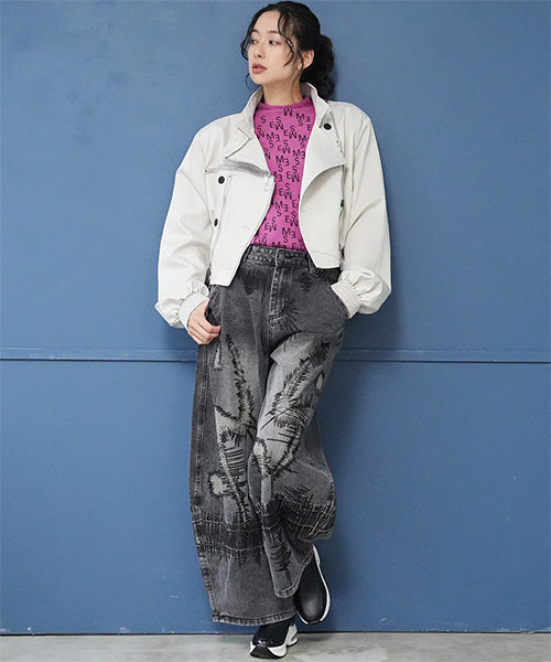 存在感のあるステッチワークが目を惹くワイドデニムパンツ。