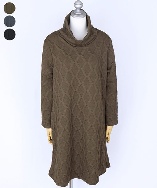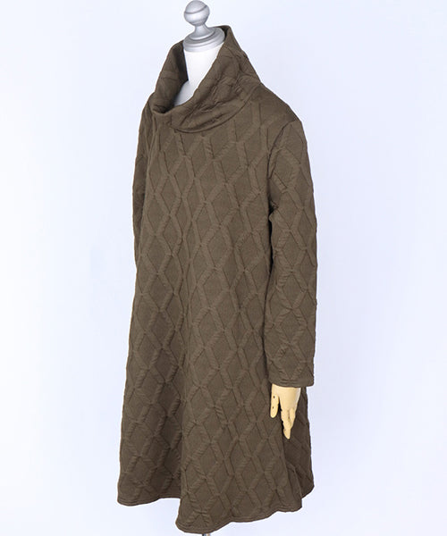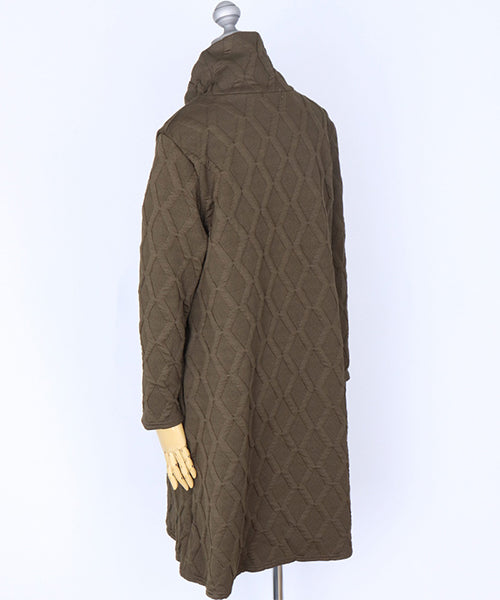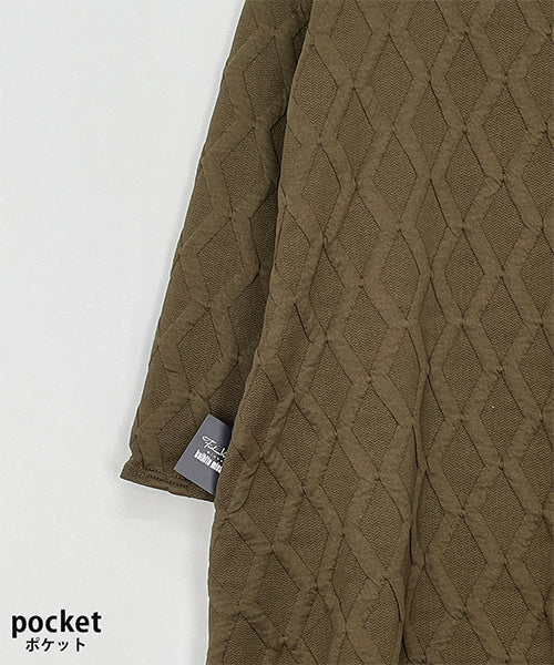 立体的なダイヤ柄が上品な印象を与えつつ、ゆったりとしたシルエットでリラックスした着心地を実現しました。
