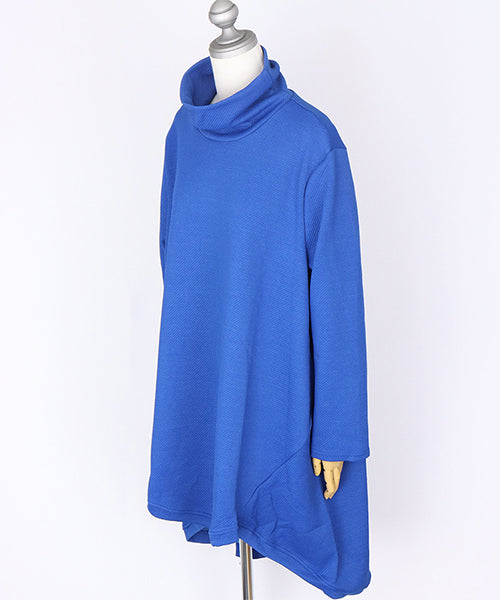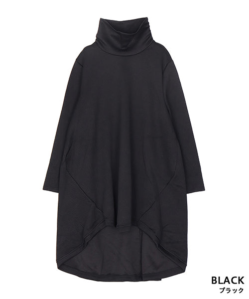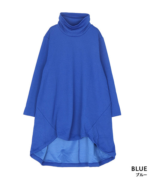 ゆったりとしたシルエットと、前後で丈に変化をつけたデザインが印象的なチュニック。 柔らかく伸縮性のある生地で着心地も快適。 首元はたっぷりとしたハイネック仕様で、顔まわりに優しいボリュームをプラスします。 ヒップラインをカバーする丈感で、レギンスや細身のパンツとの相性も抜群。