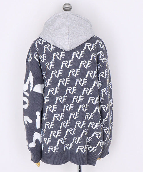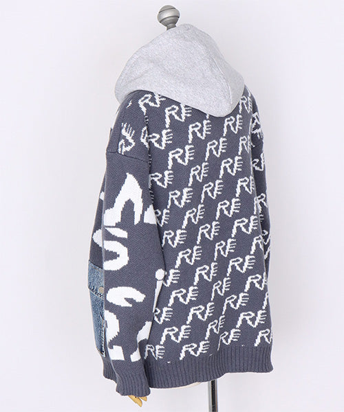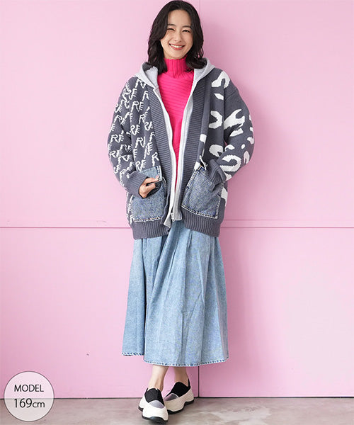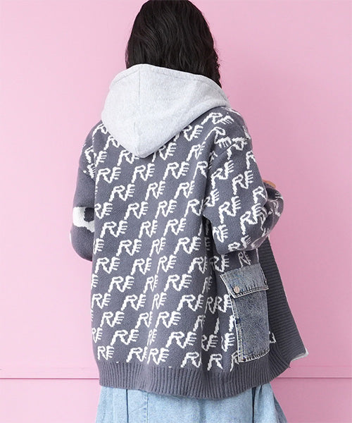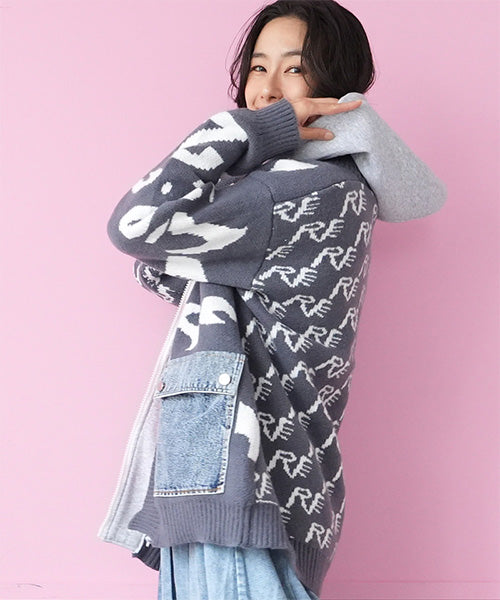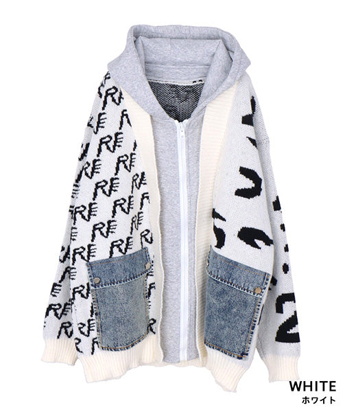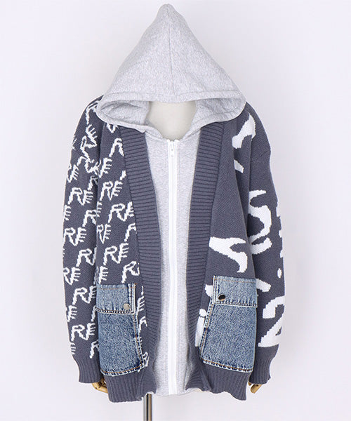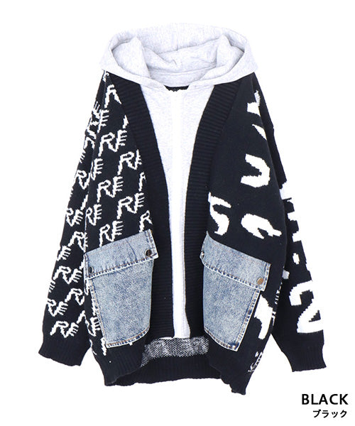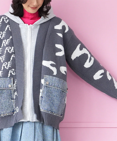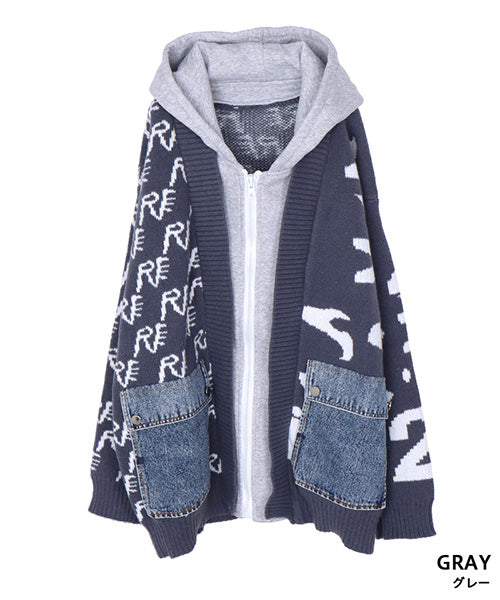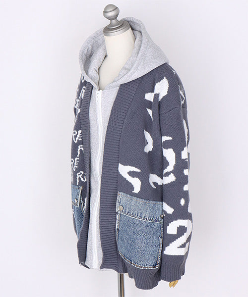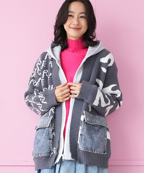 まるでレイヤードしているような、遊び心あふれるドッキングデザインのニットカーディガン。