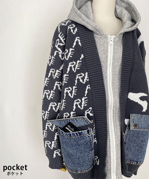 袖や身頃に施された大胆なロゴデザインが視線を集め、デニムポケットがアクセントに。