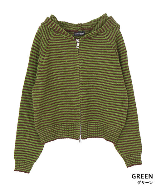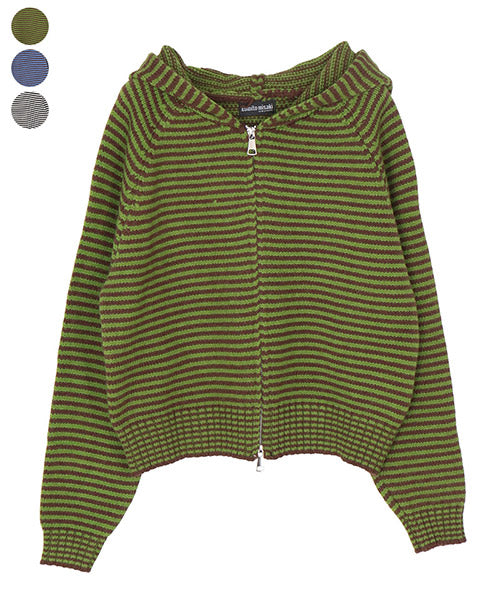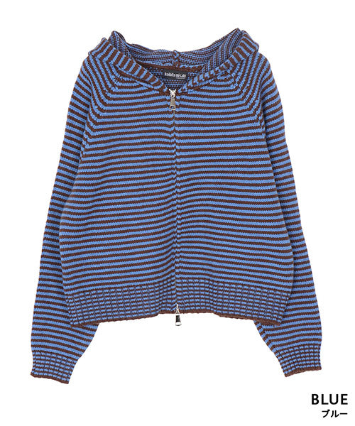 立体感のあるざっくり編みがポイントのボーダーニットジップパーカー。 軽く羽織れるジップタイプで、季節の変わり目にも使いやすい1枚です。 フード付きでカジュアルさをプラスしつつ、程よくコンパクトな丈感がバランスの良いシルエットを作り出します。 ゆったりとした袖でリラックス感もあり、デイリーコーデに合わせやすいアイテムです。