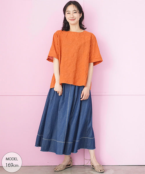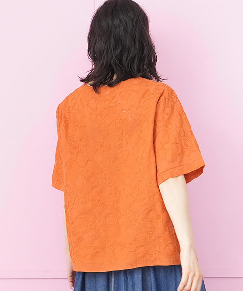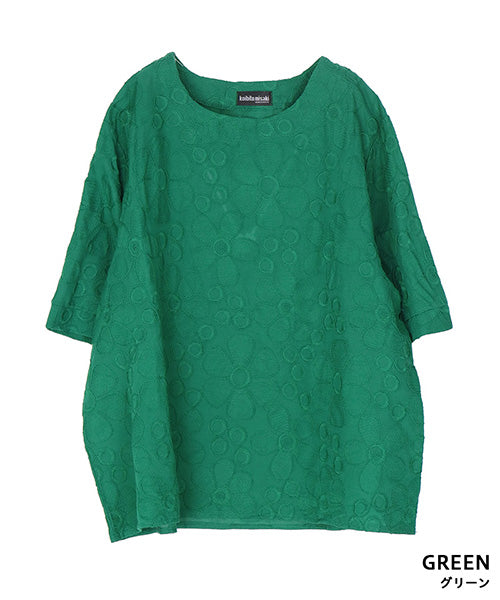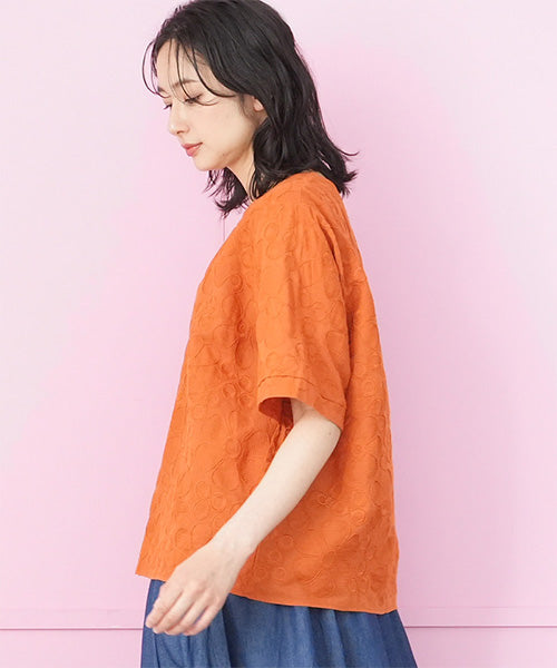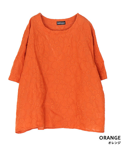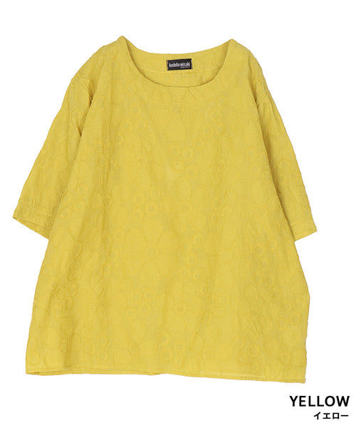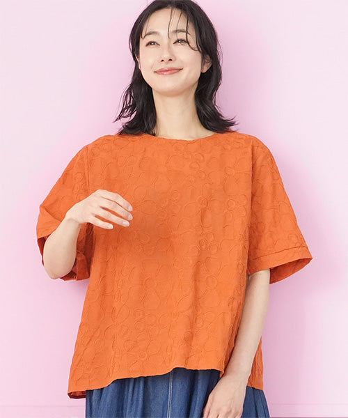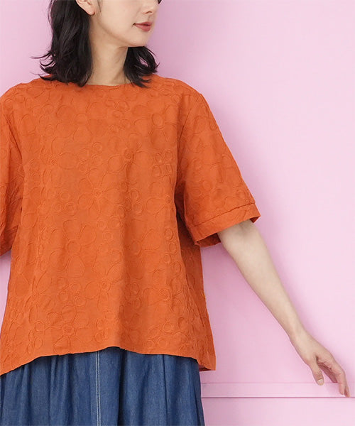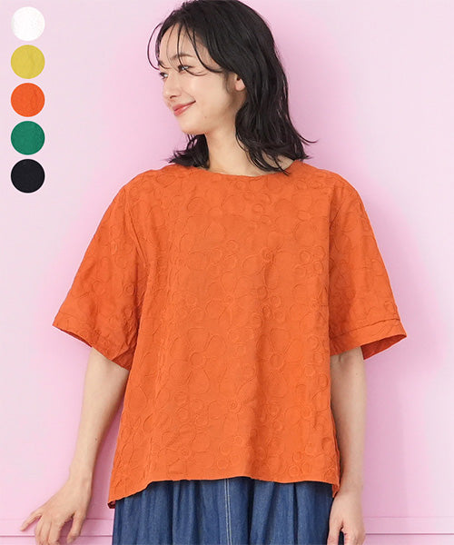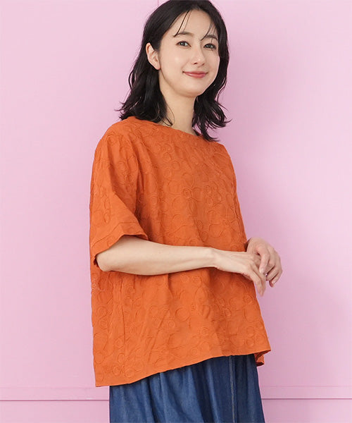 綿100%花柄刺繍ショート丈プルオーバーブラウス 06-3012