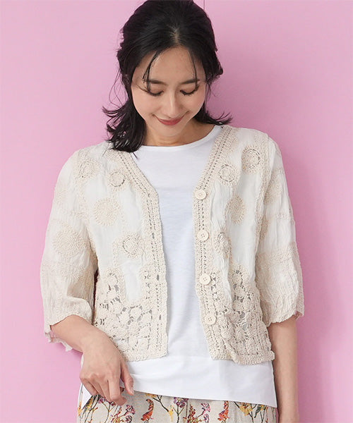 綿100%Vネック6分袖刺繍ショートカーディガン 06-3017|40代 50代 60代 大人の女性に向けた 銀座発 ミセス 婦人服 レディースファッションブランド|コイビトミサキ公式通販|ファッションヴィレッヂ