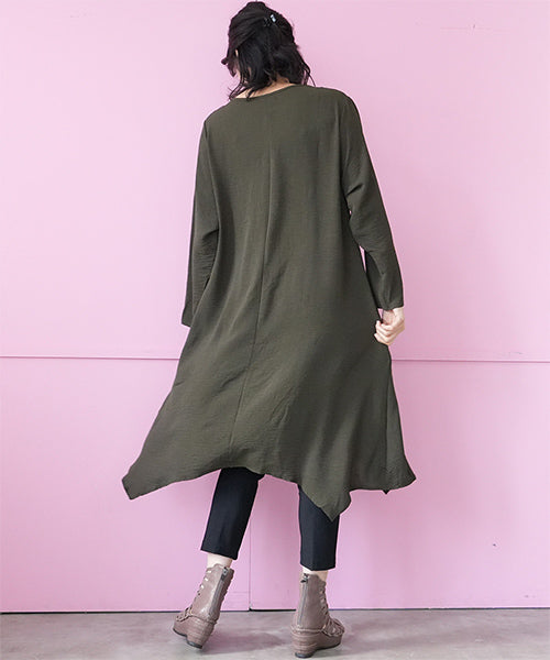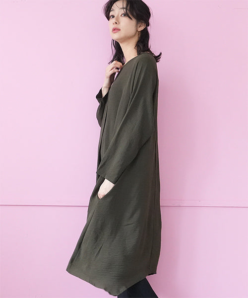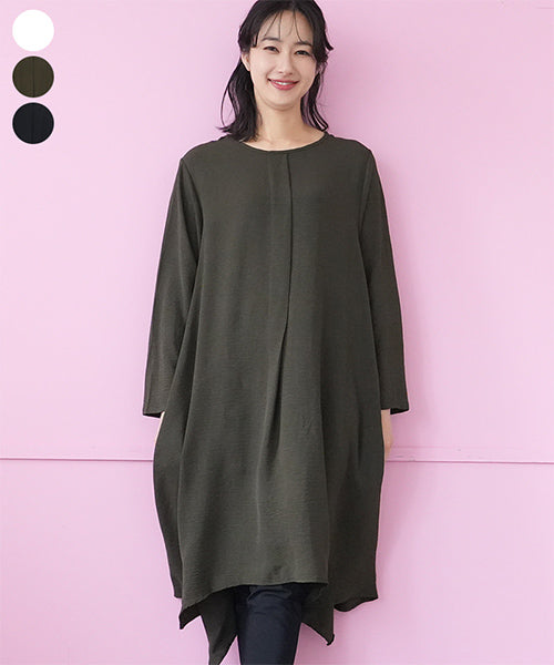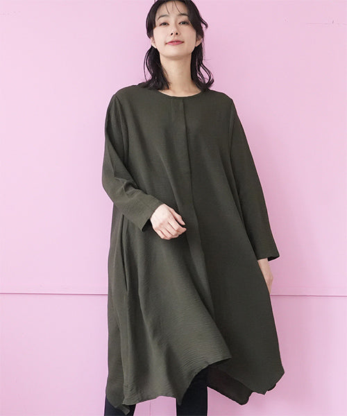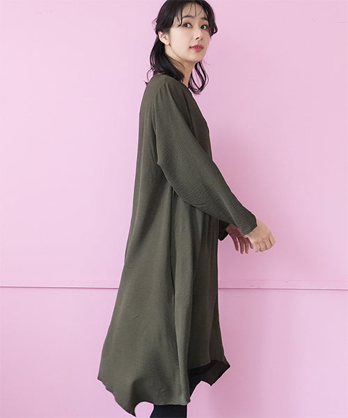 程よく落ち感のある素材を使用し、身体のラインを拾いにくいゆったりとした着心地。