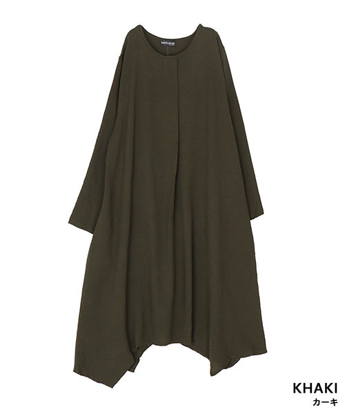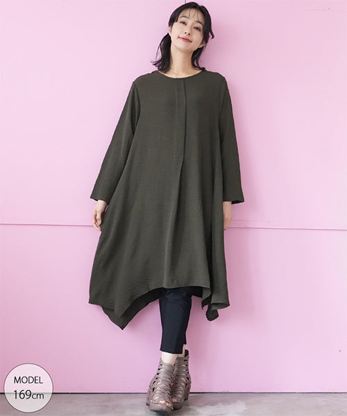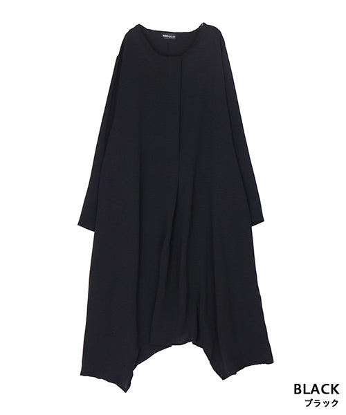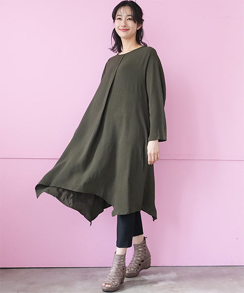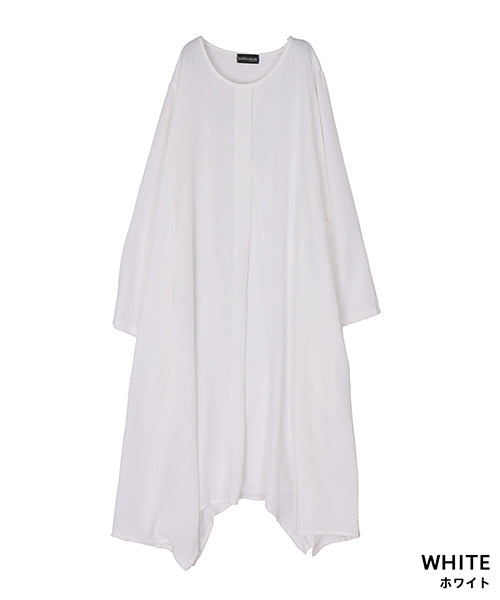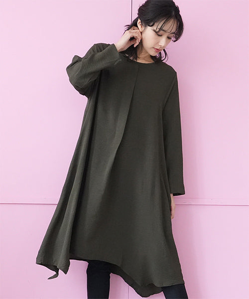 流れるようなドレープと前後差のあるヘムラインが印象的なワンピース。