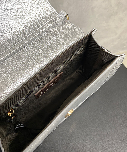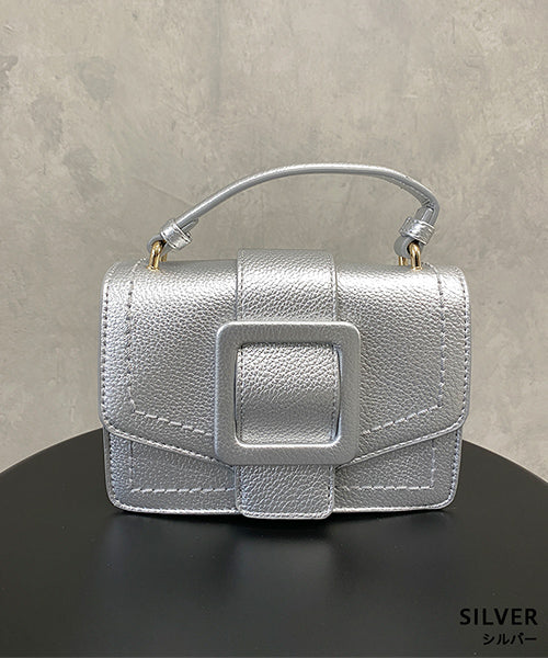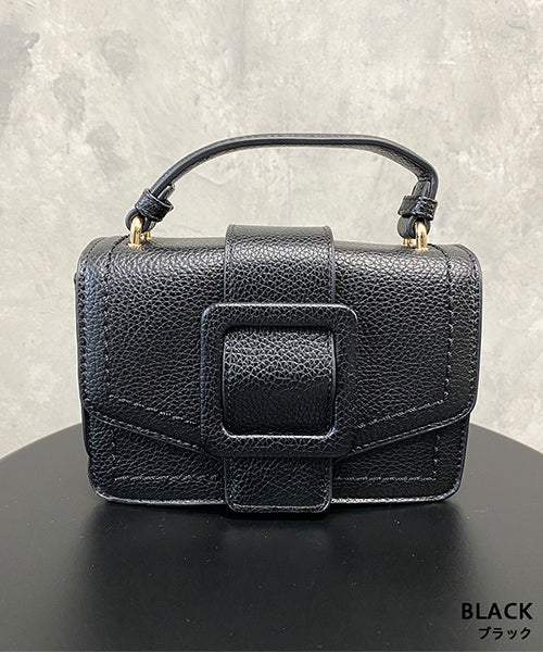 スクエアのバックルが目をひくベルトモチーフマイクロショルダーバッグ。